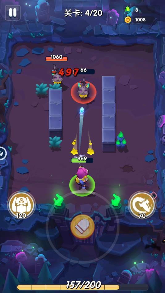 勇敢冒险闯关,每个关卡都将面对不同威力敌人,灵活走位躲避攻击。