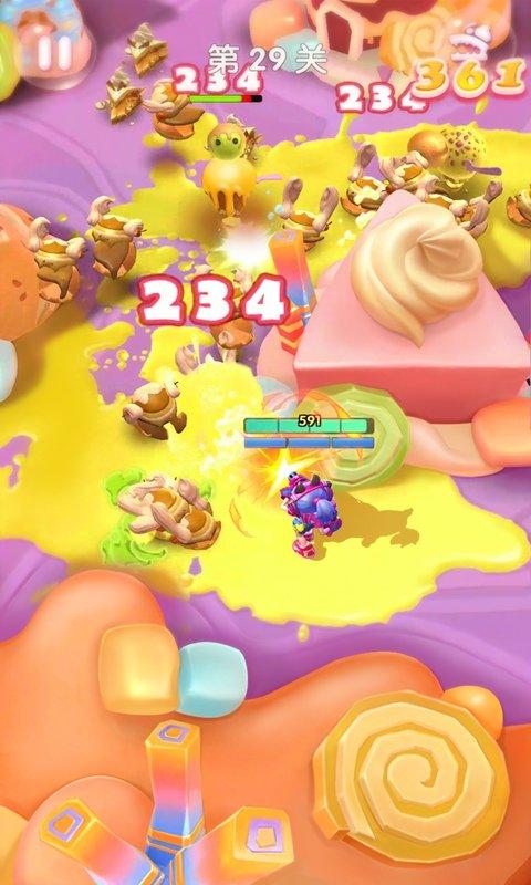 2. 各种各样的甜品怪物,你需要去对抗它们的甜蜜炮弹。