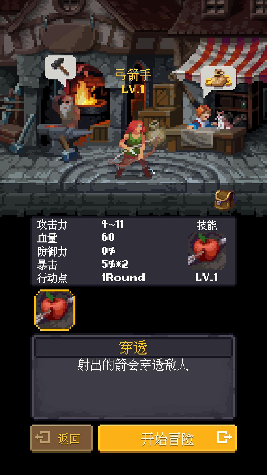 在选人界面指向战士,点击开始冒险,在下个界面出现之前迅速滑动屏幕,就可以选到其它人物。比如,点下开始冒险后,手指迅速向右滑屏幕三下,就可以选到弓箭手。