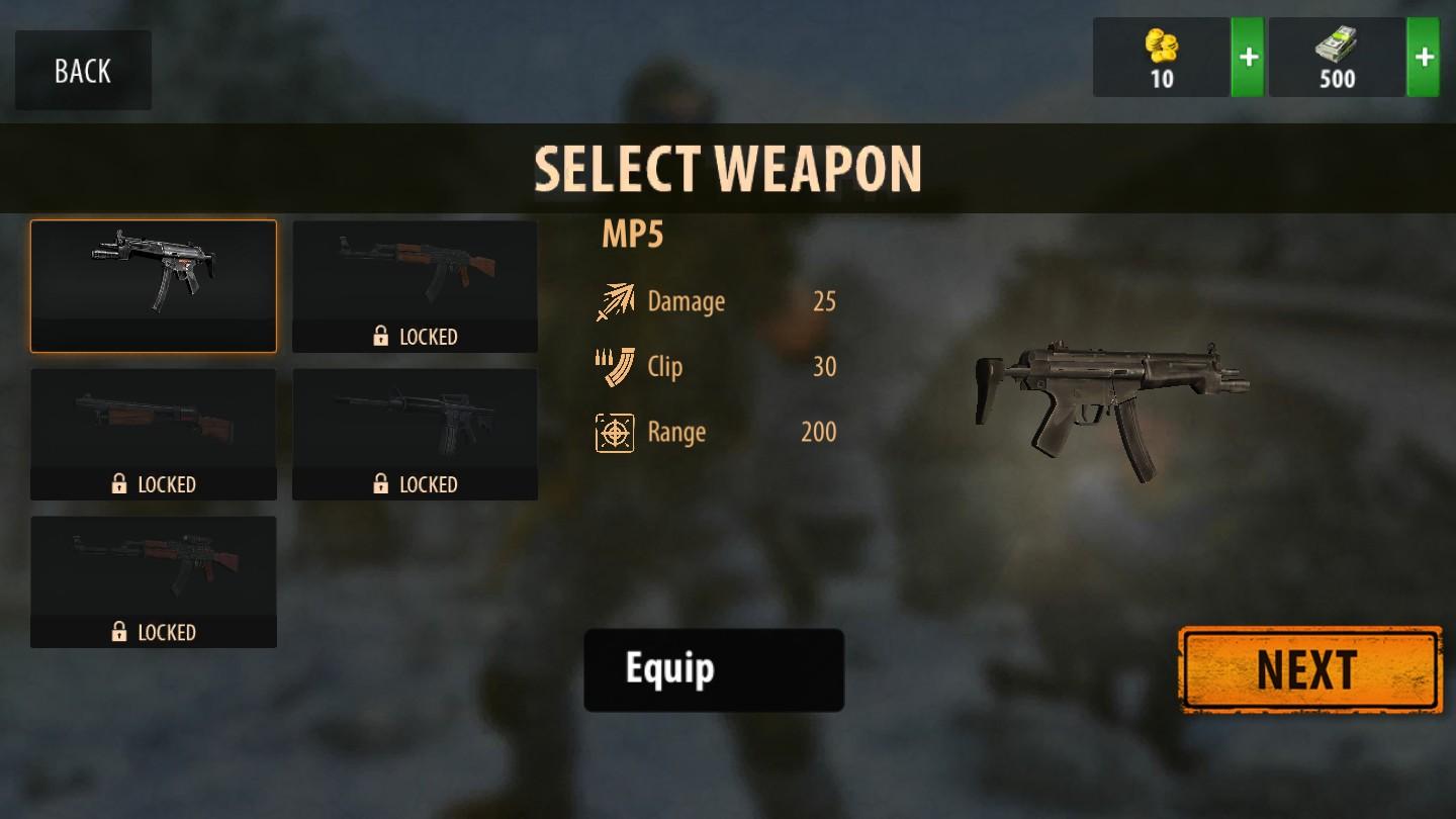 多种武器可以使用,游戏目前提供了5种武器的选择,冲锋枪mp5、自动步枪ak47和m4a1以及带瞄准镜的改装版ak,最后就是近战的霰弹枪;