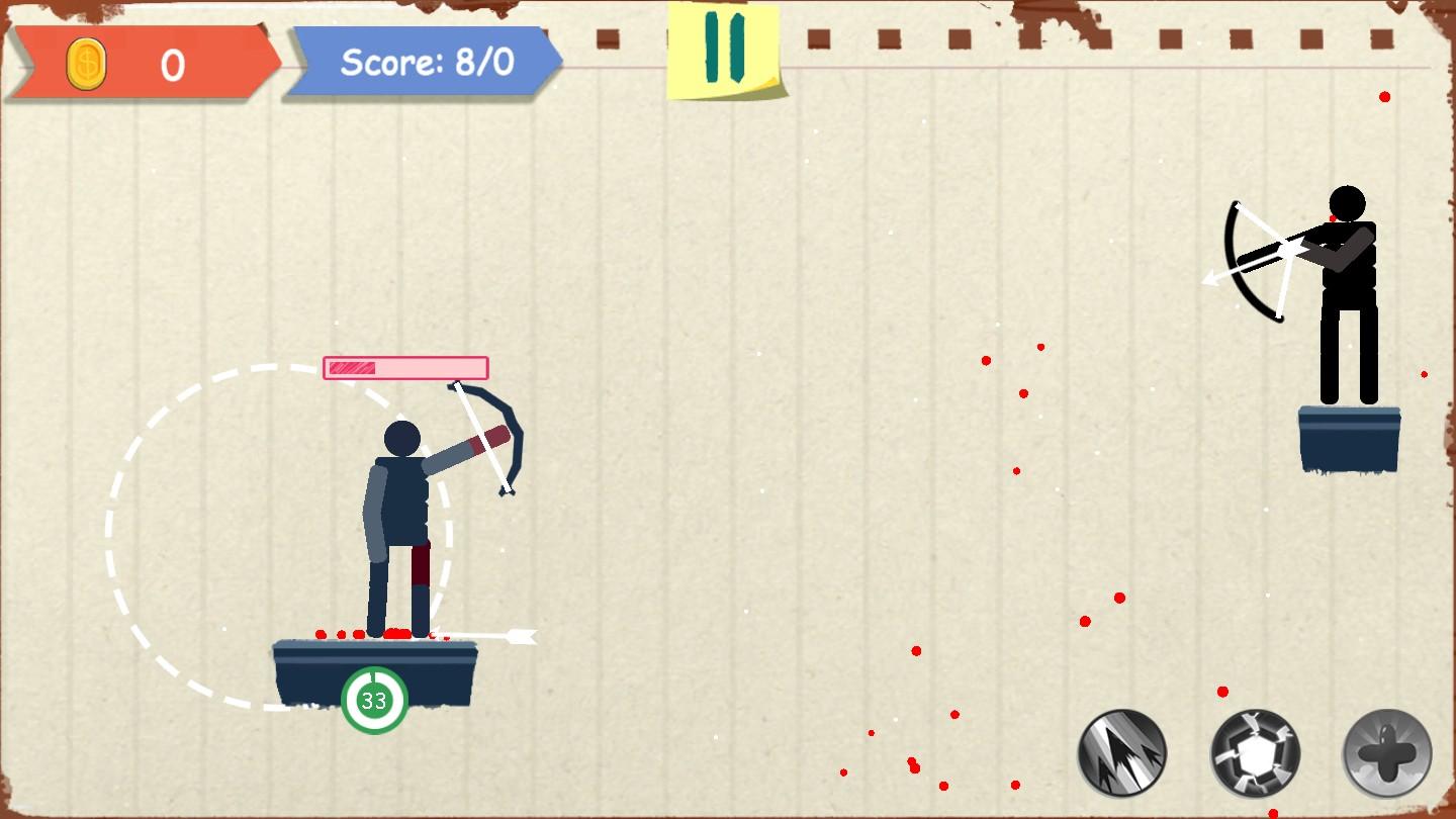随机刷新的敌人,每当你击败一名敌人之后就会在屏幕上随机刷新一名敌人,它出现的位置是随机的,你需要快速反应,并向他射箭才能避免受到伤害;