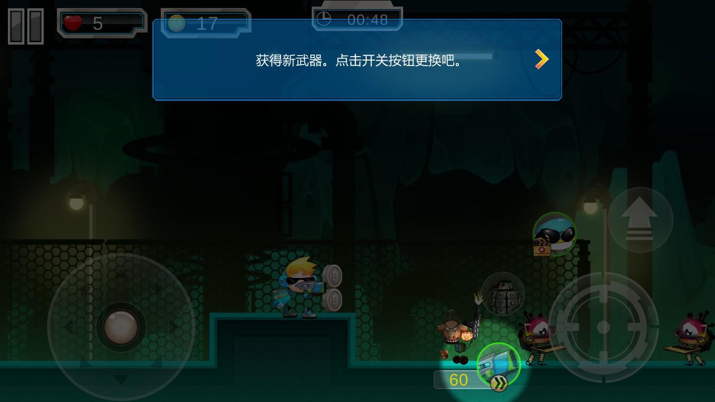 这是一款非常普通的横版射击类游戏,为什么说普通,主要是因为该有的元素这款游戏都有了,但是缺少一定的创新;