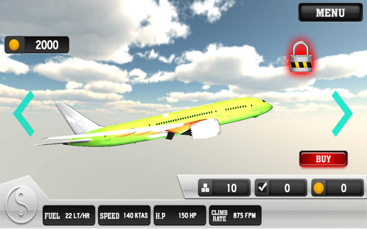众多的飞机和地图可供你选择,选择自己喜欢的地图或飞机,开始航行
