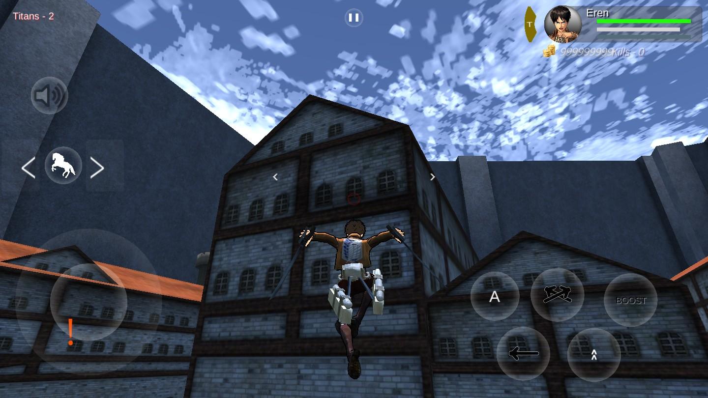 飞行移动,在这款游戏中你的主要移动方式是靠立体机动装置带来的飞行能力;