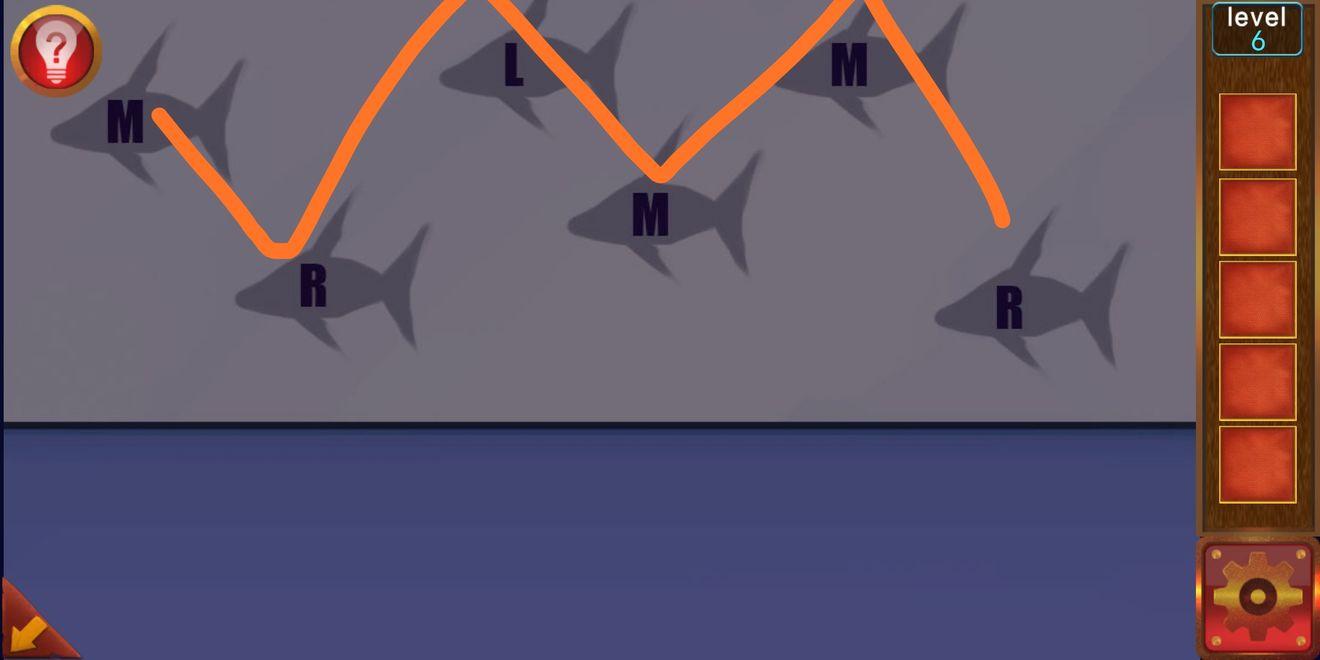 3.根据房顶的提示按顺序点按钮 (中的英文middle 缩写M ,左的英文left缩写L, 右的英文right缩写R)(MRLMMR就是中右左中中右)