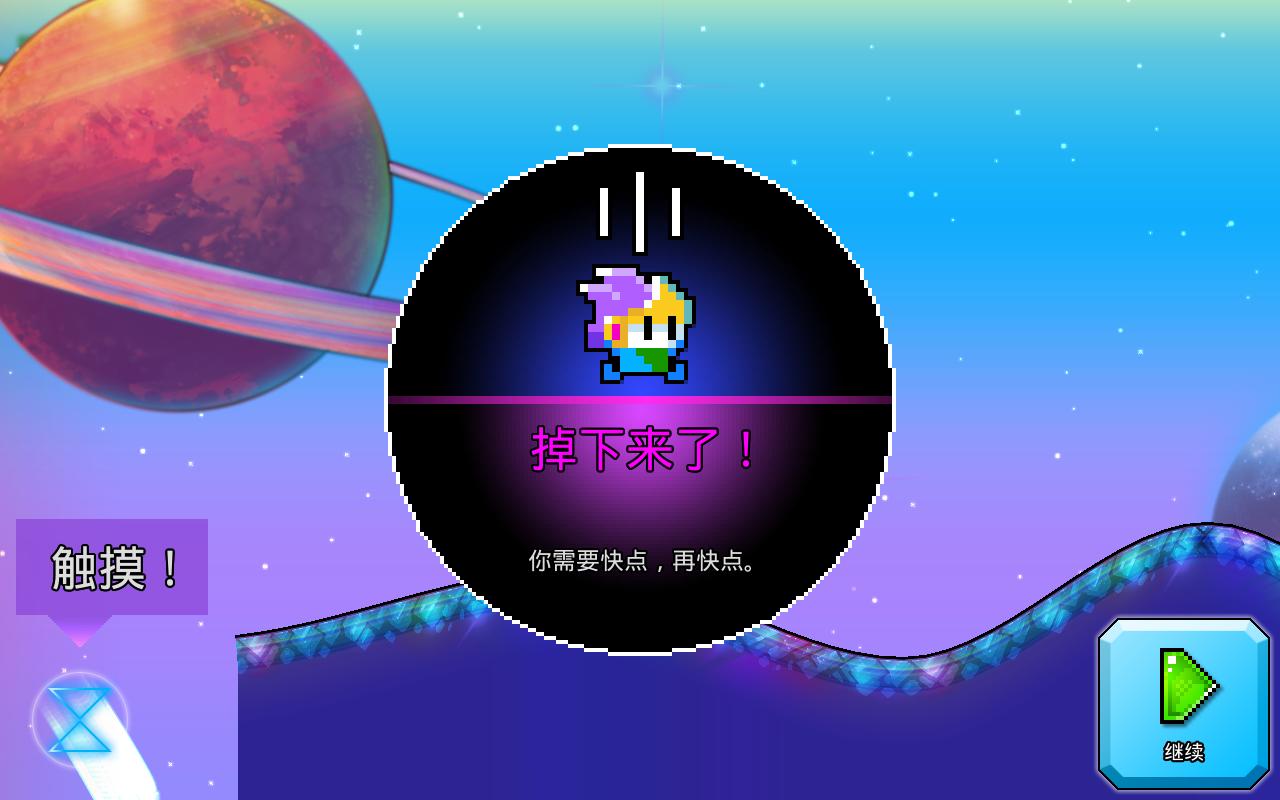甚至玩家掉到宇宙断层的时候,都可以通过点击屏幕右边时光倒流,给予玩家重生的机会
