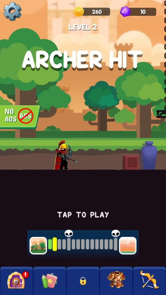 简单有趣的玩法,游戏的玩法非常简单,玩家只需要在合适的时机点击屏幕射箭就可以了;
