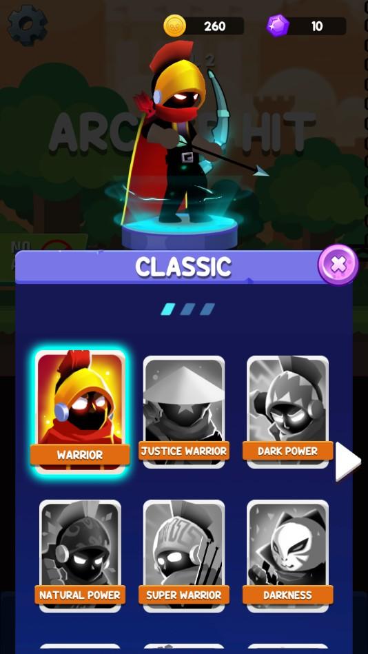 弓箭手之击是一款以射箭闯关为主题的横版过关类游戏,在这款游戏中玩家扮演一名弓箭手,不断向前冲在面对敌人的时候毫不畏惧,摆出一个帅气的姿势就将敌人射倒在地,你还可以通过收集金币来购买新的弓箭和角色来扩充你的收藏,游戏非常好玩,而且很适合休闲娱乐,推荐下载。