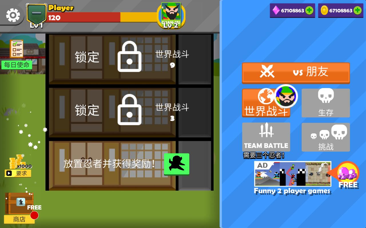 游戏更有训练塔模式,更等待着玩家使用,把每一层训练塔都放置一名忍者,就会收获大量的金币和钻石