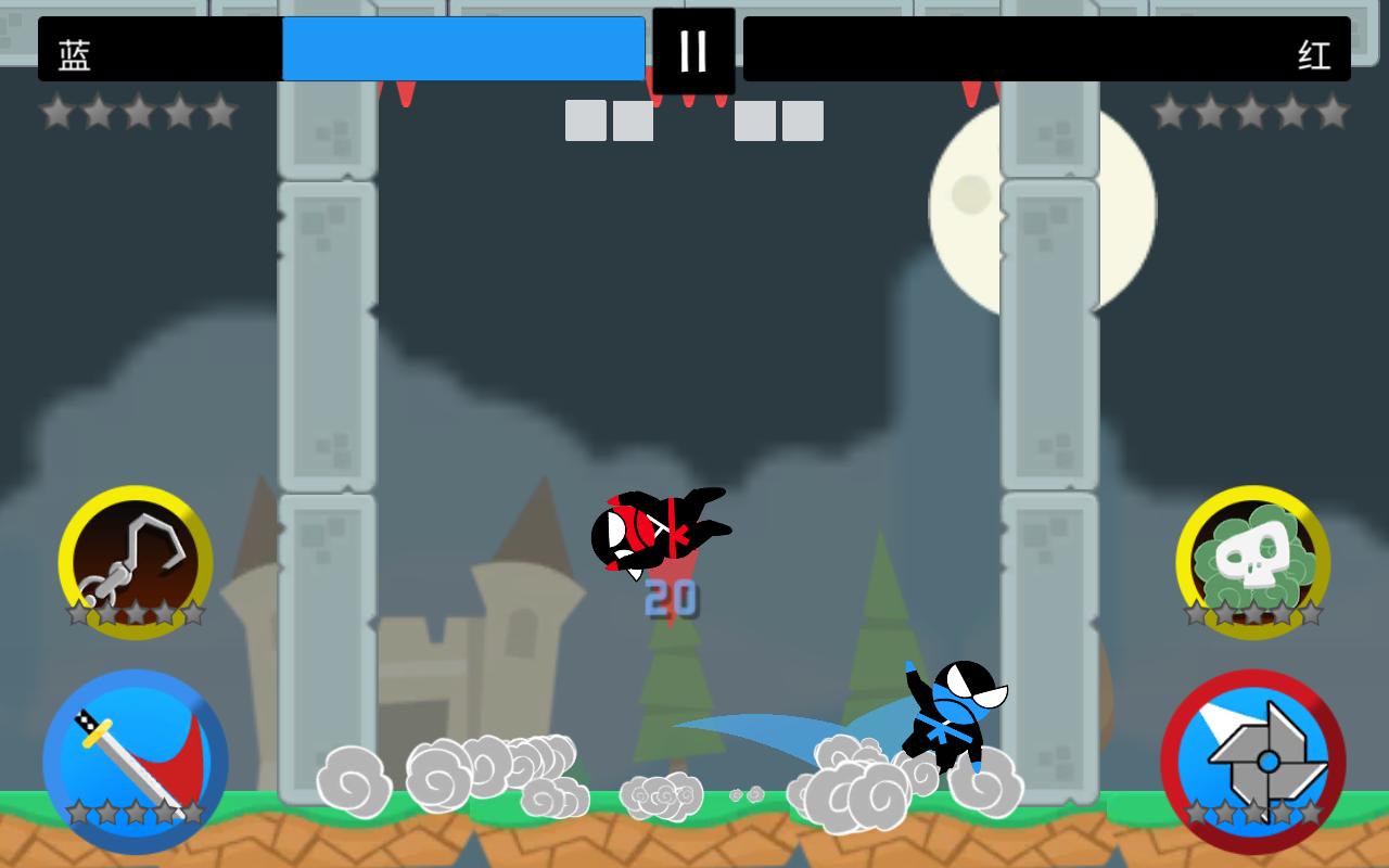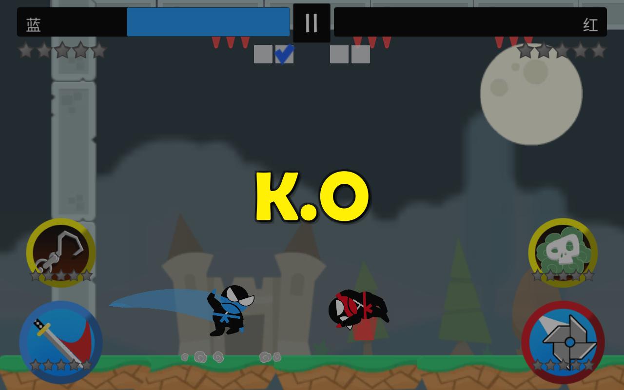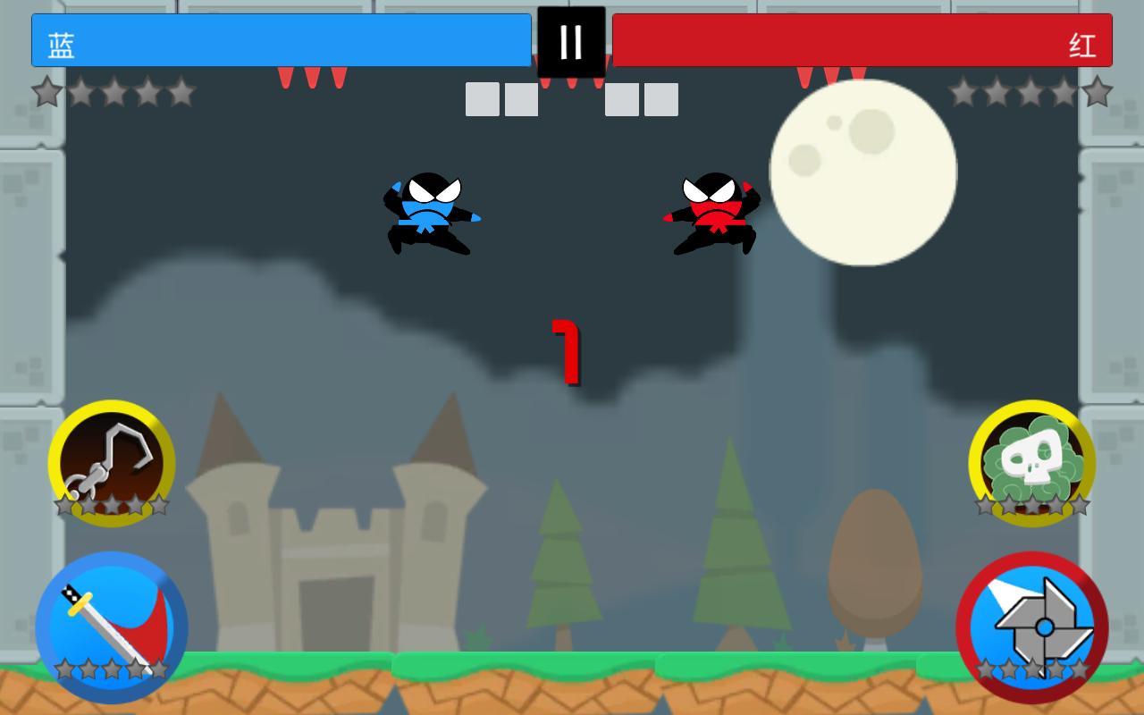 跳跃忍者大战是一款以动作忍者为题材的冒险对战游戏,在这款游戏中,玩家需要不断控制着忍者进行1v1战斗,游戏中有四种不同的战斗模式,给玩家最大的忍者战斗体验,游戏更能进行双人的在线对战玩法。游戏采用黑色火柴人式画风,场景布置精致,动作流行,给玩家十足的游戏乐趣,心动了吗?还等什么?快来下载试玩吧!