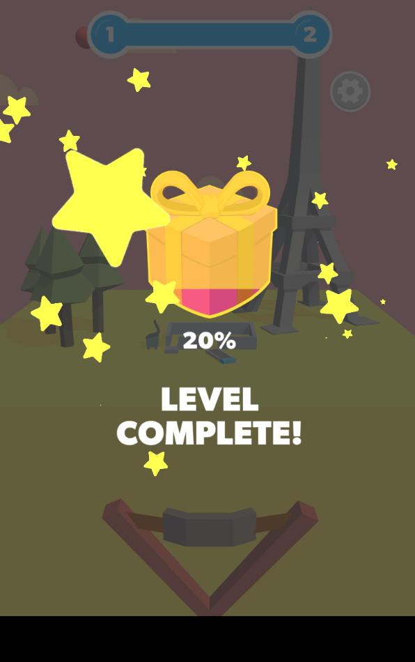 玩家的目标就是射中对面的小人,然后获得胜利,玩家通关后会解锁下一个关卡,进入更加困难的挑战