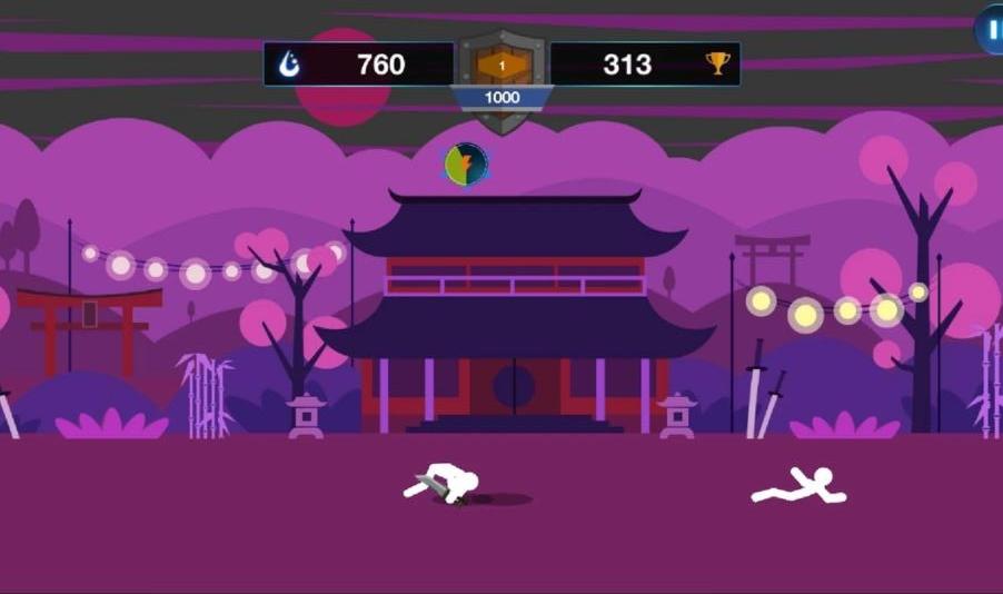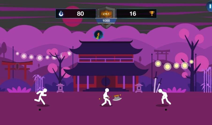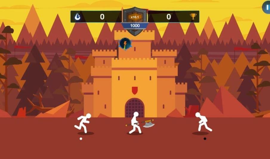 1、游戏种通过左右移动火柴人来进行攻击,注意躲避地面的危险和天上掉落的攻击哦。