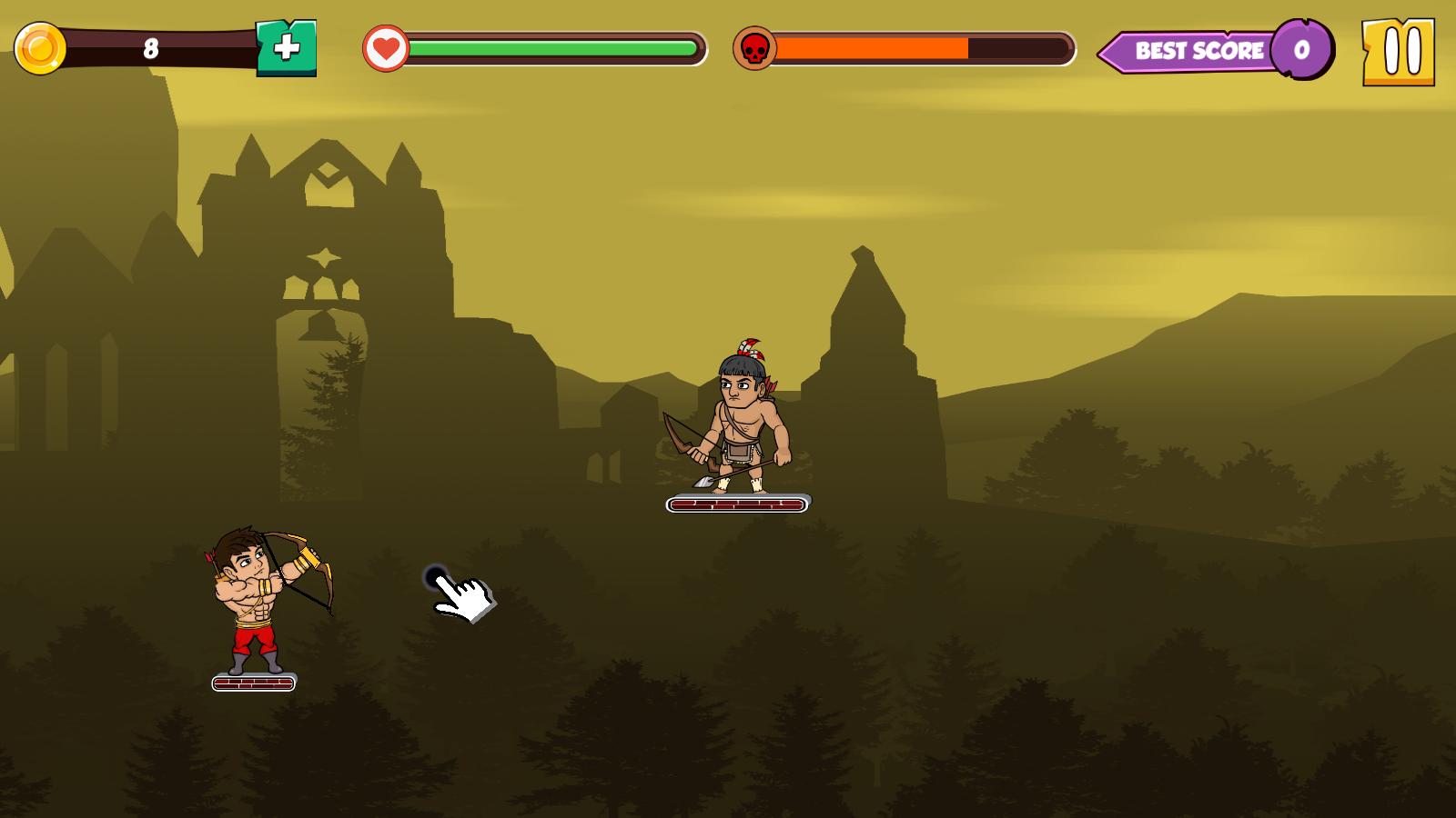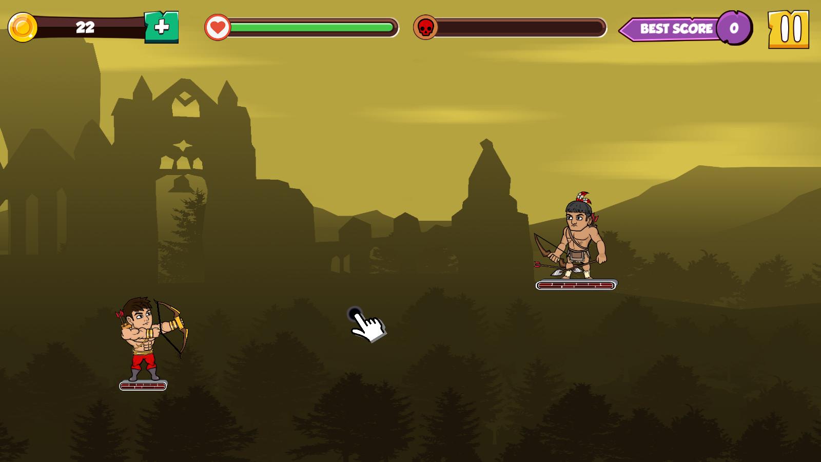 王者射手是一款非常经典好玩的射击游戏,这款游戏的画风比较清新,玩法十分简单,很容易上手,但是很有挑战性,玩家需要使用弓箭把所有的敌人都射击下来,射击的适合要注意好角度和力度,同时要注意避免被敌人攻击到,血条没了后就会角色就会死亡;