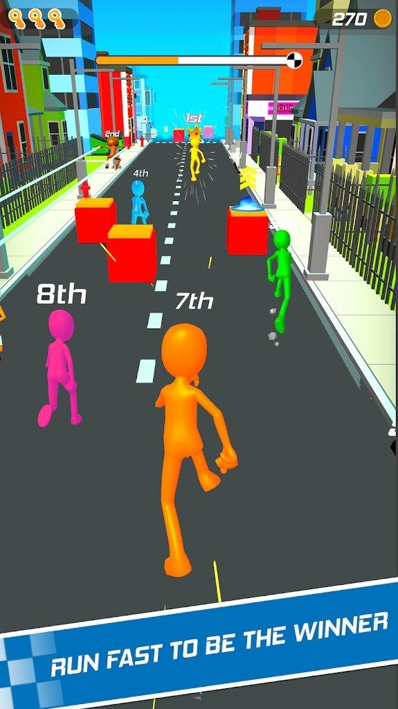 玩家需要控制角色不断向前奔跑,率先到达终点成为游戏的冠军