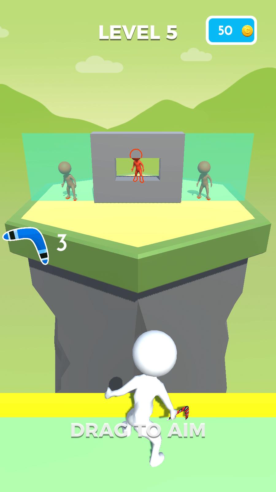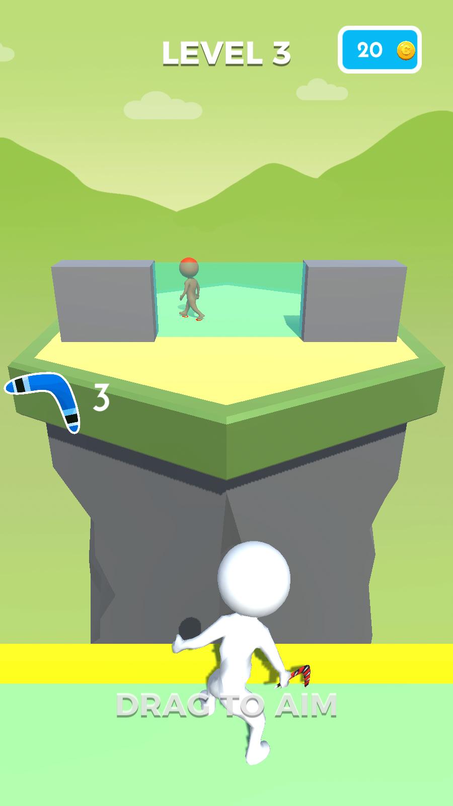 飞旋镖3D是一款玩法十分有趣的射击类型游戏,这款游戏的画风很简洁,游戏没有多余的场景,玩法也很简单,很容易操纵,但是游戏有一定的挑战性,玩家需要将手中的飞旋镖击倒前方的敌人,注意每个关卡的敌人数量不一样,而且飞旋镖的数量也是有限的;