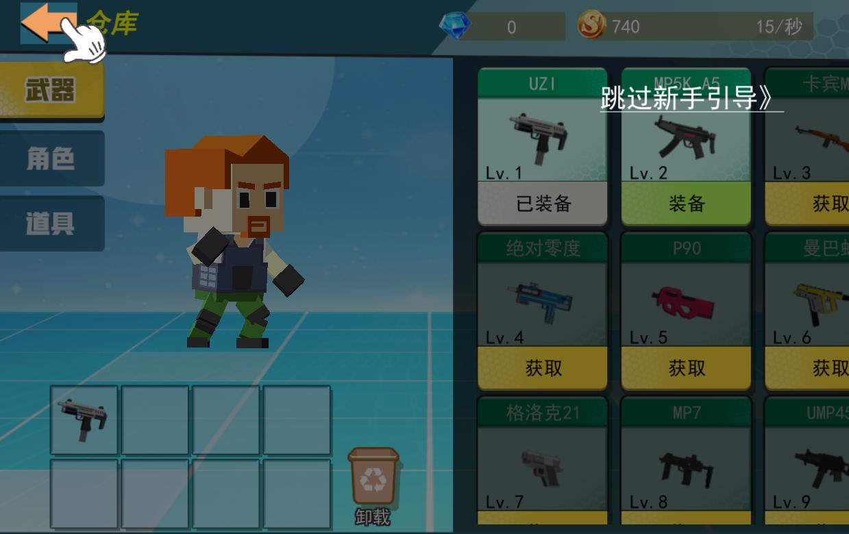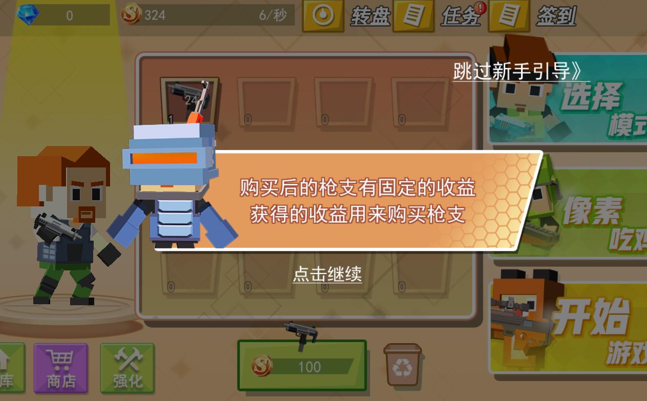 和平荣耀像素吃鸡是一款不错的射击游戏,当玩家进入游戏后,首先需要获得枪支,这个时候会有一个可爱的方块像素小人告诉你要怎么获得枪支,等你获得枪支后就开始了游戏,玩家就会开始匹配,然后游戏正式开始。