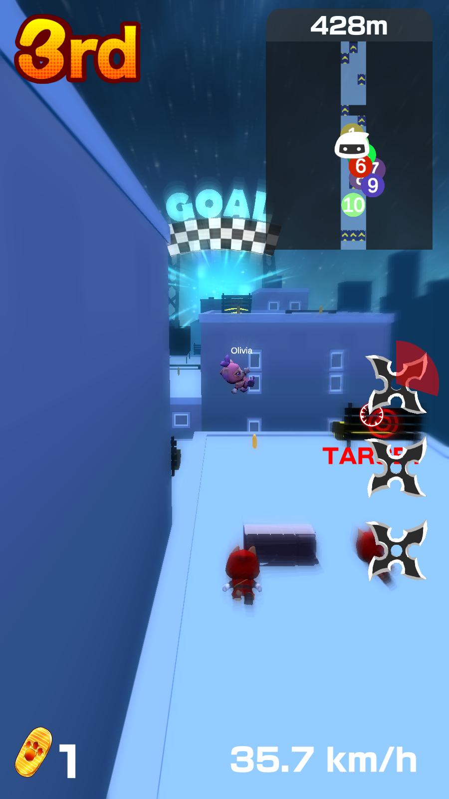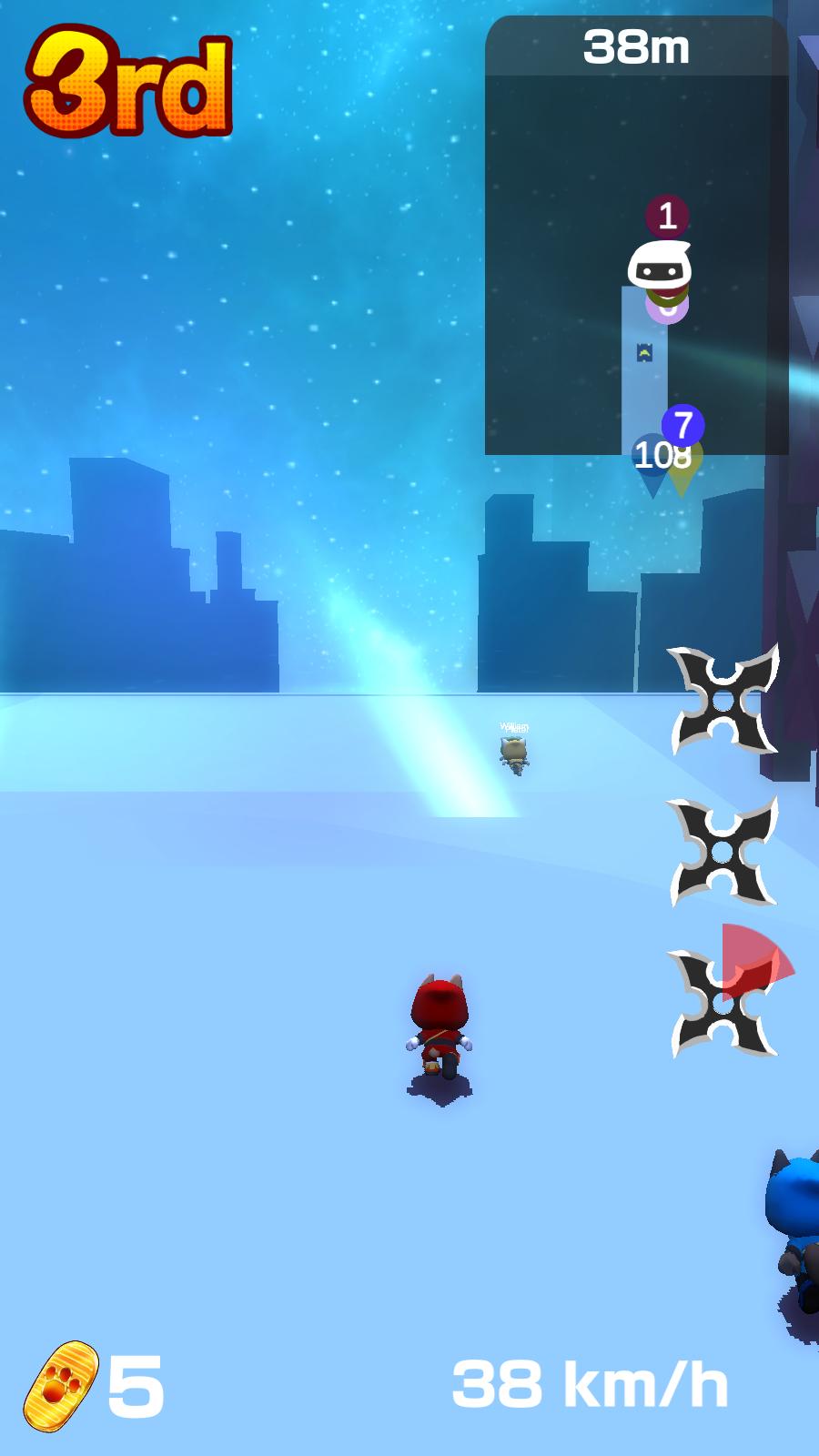 狗狗忍者2是一款画风十分炫酷的休闲闯关游戏,这款游戏中玩家将扮演一名卡通形象的可爱狗狗在游戏中参加跑酷冒险,游戏玩法是多人竞技的类型,上手十分的简单有趣,操纵狗狗在场景内快速到达终点,用飞镖除去障碍物获得加速可以帮助您获得胜利;