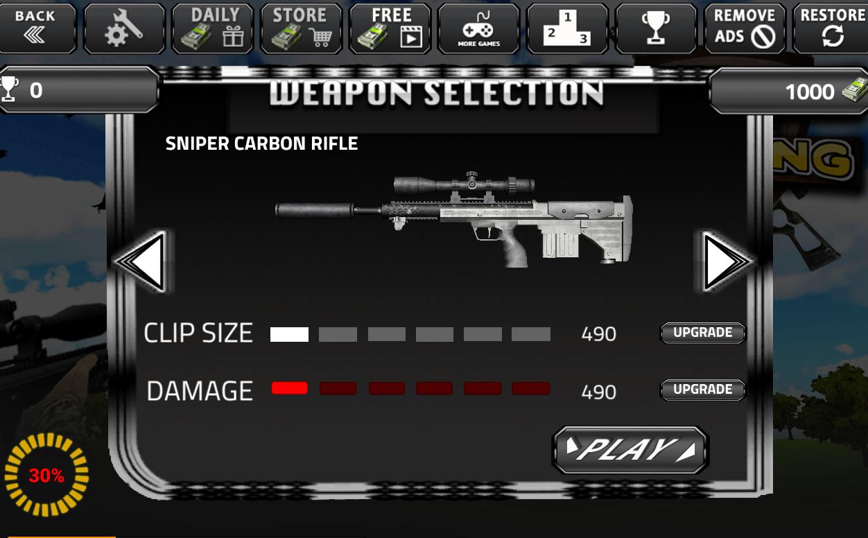在每个级别上对每一次狩猎都获得了硬币,点击购买按钮购买其他狙击手。