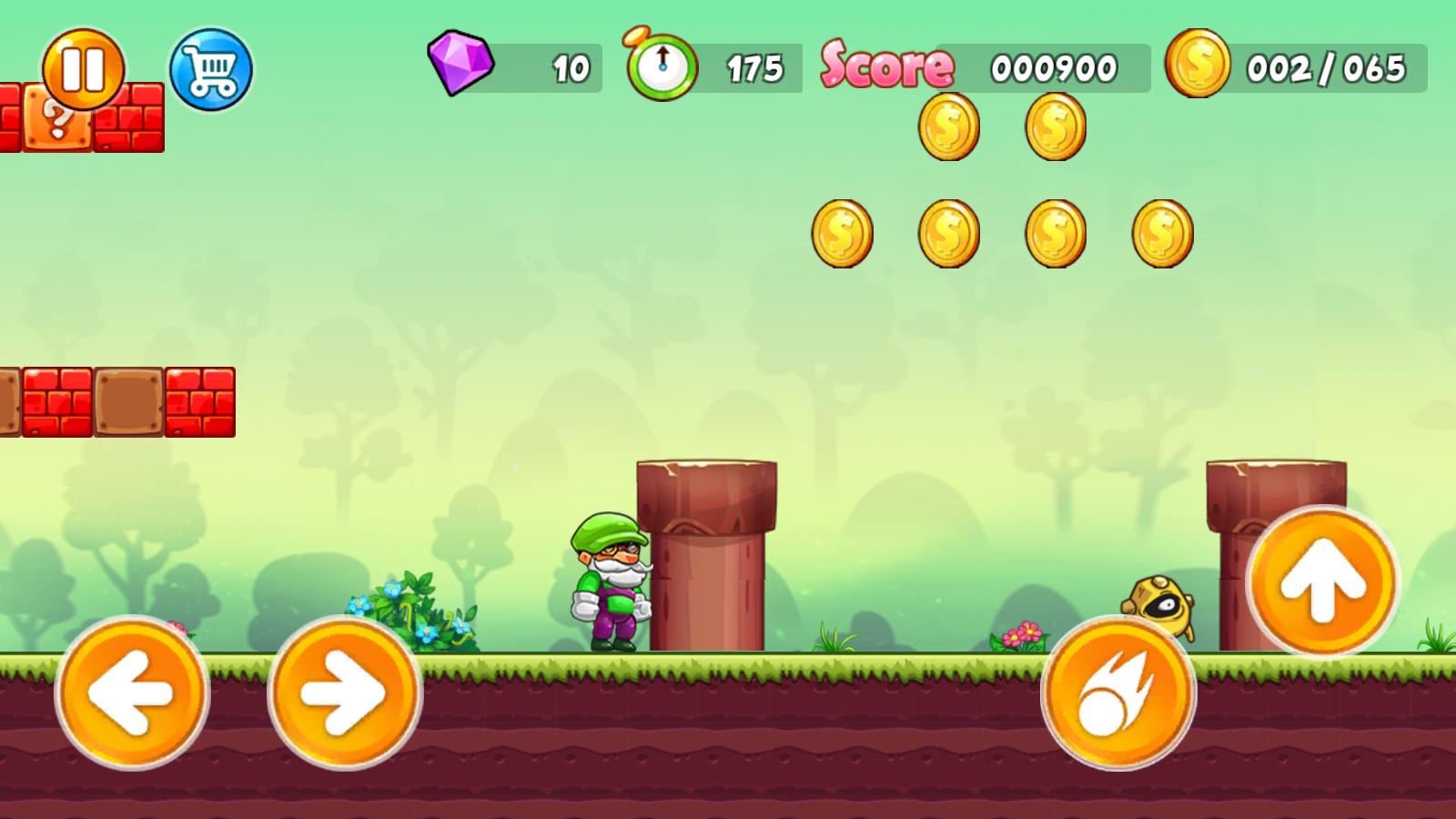 超级皮诺是一款玩法很经典的横版冒险闯关游戏,这款游戏能够让人回忆起童年的游戏时光,玩法是很简单的,玩家需要在地图中操控角色前进,躲避各种陷阱和障碍物,还要消灭掉怪物,不让自己受伤,多收集金币,成功到达终点即可通关,游戏玩起来十分有趣味性;