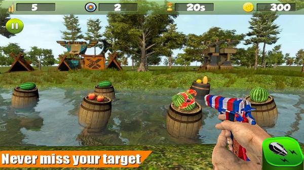 很有趣的练习玩法,玩家在游戏中可以尽情用各种水果做射击测试