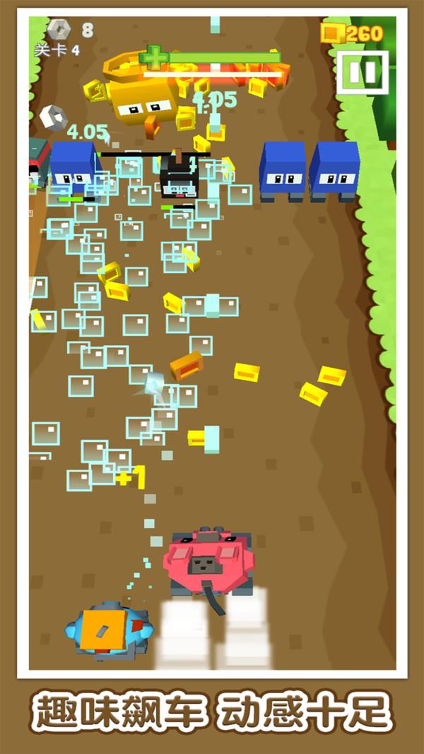 玩家在游戏中可以驾驶自己的战车摧毁沿途的障碍,并成功抵达终点过关