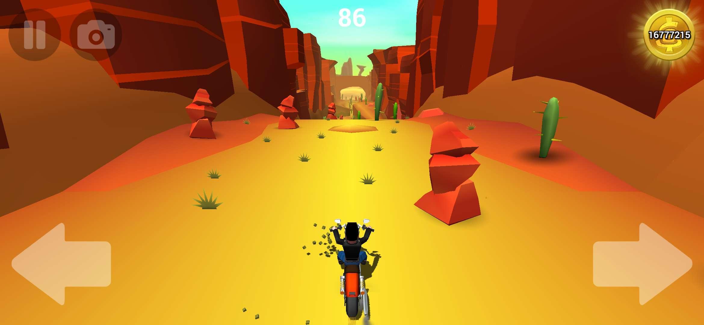 玩家在游过程中需要驾驶摩托车不断的前进来获取更高分数