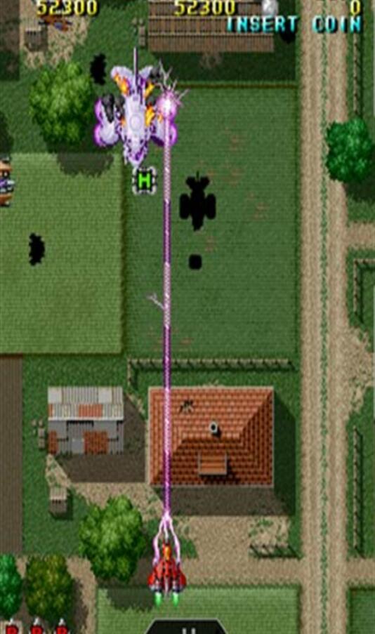 雷电II的武器除了上一代的蓝色雷射与巴尔干炮之外,新增一个新武器--紫色电击。