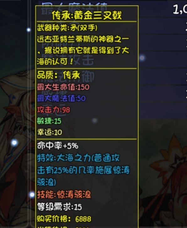 声望如何合理巧妙的使用:前期山林镇声望留着换霸气,临海镇声望2000声望与镇长对话有惊喜好礼:破久的三叉戟?? 修复之后就是下图了(需要的奇异宝珠,可分解粉获得,入魔天师任务也有一个)