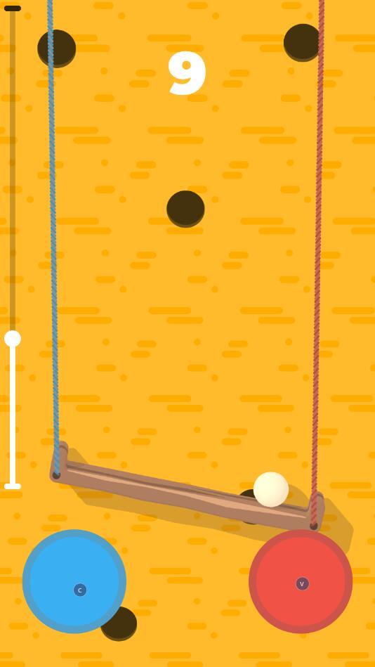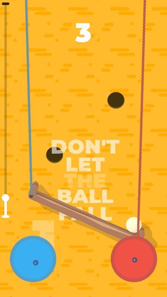 别让球掉进洞是一款很考验玩家平衡能力的休闲小游戏,这款游戏看起来非常的简单,但是操作起来却很虐心,玩家需要通过控制红蓝两根绳子的高低来保持木板上圆球的平稳,一直拉动绳子让球球往上移动就能得分,避免球球掉落得同时还需要防止球球滚动到洞洞里面去;