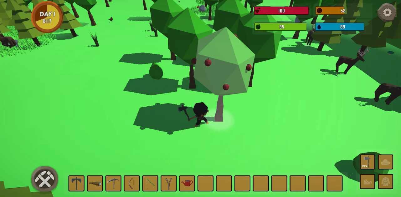 通过简单的控制你就能够体验这款游戏的各种诸如狩猎、开采、砍树、建造的玩法;