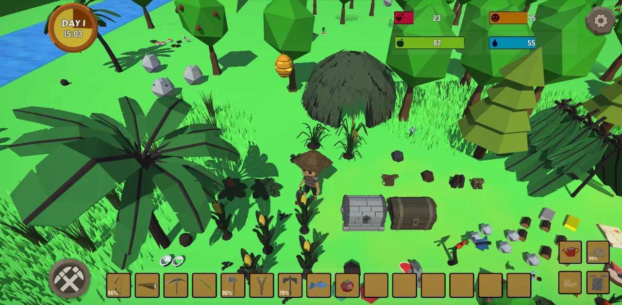 在这个无人的小岛上你必须要生活下去,值得庆幸的是,这是一座非常富饶的小岛,各种生物资源是相当的丰富的,只要你能够使用工具永远也不会饿死,在这款工匠矿岛建造的游戏中你将能够体验到非常真实的沙盒生存的游戏体验,探索、收集、制造工具、生存、狩猎等等内容都在这款游戏中有所呈现,非常丰富的生存指南。