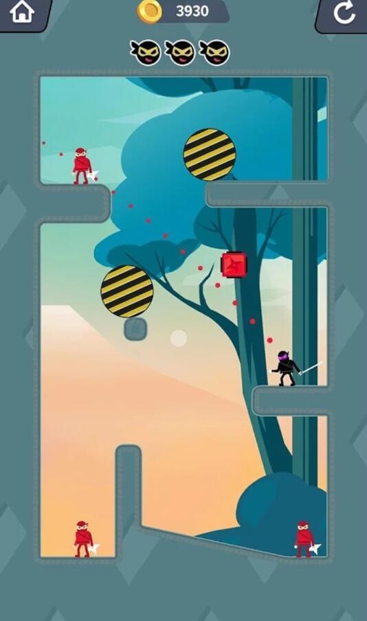 1.创新的采用了物理原理,玩家利用一颗子弹完成击杀任务,注意子弹射击到墙上会发生反弹;