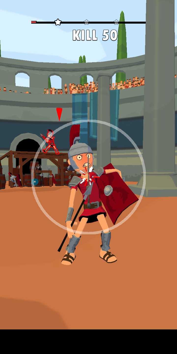 在古罗马的竞技场中,你想要活下来就必须获得胜利或者是成为看台上的人,可是现在你显然已经是在看台下了,没有办法为了活命你只能够豁出去了,在这款角斗士竞技场英雄的游戏中你将能够体验到非常有趣的竞技场决斗的游戏玩法,通过快速的点击冲刺你就能够将敌人击败,不断你面对的是个啥,冲就完事了。