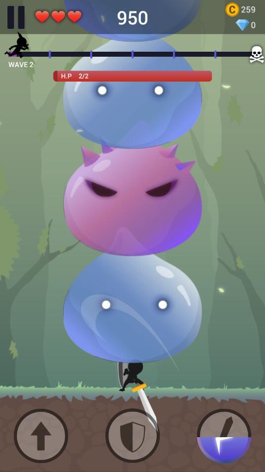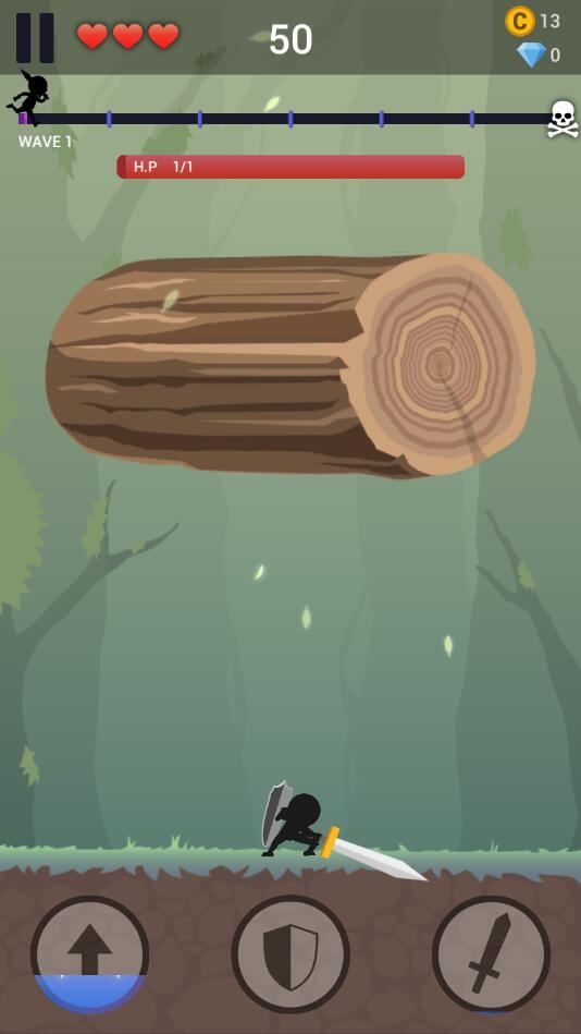 游戏操控方法简单,控制火柴人跳跃和挥剑,在有危险时用护盾保护自己;