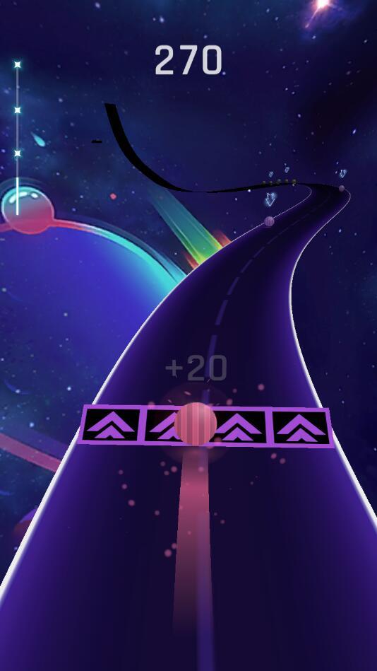 各种不同颜色的小球奔驰赛道上,灵活避开各种出现的障碍物体;