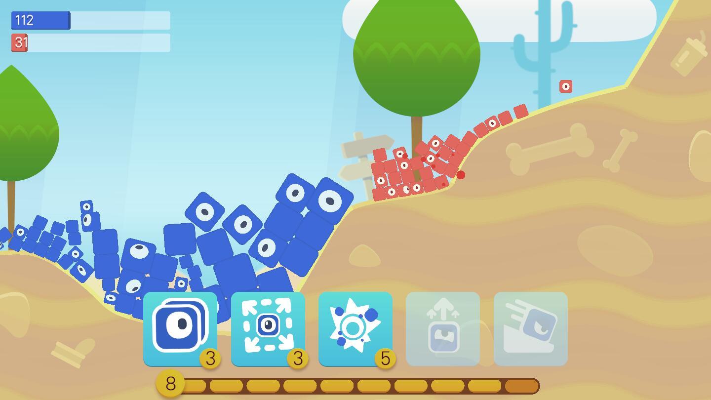 分裂战争是一款独特的冒险对战游戏,这款游戏有着新颖的玩法,玩家需要将自己的Evo进行分裂或者壮大,让它能够消灭掉敌人,游戏有多样化的玩法,需要您开动脑筋在合适的时机使用技能,还能够对Evo进行升级,并解锁不同的角色来参与战斗;