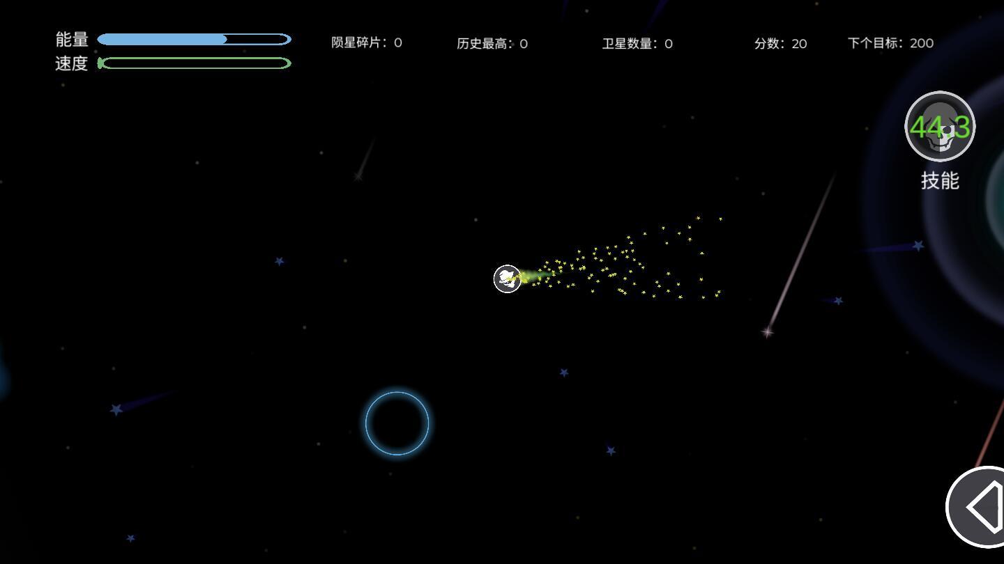 广阔的宇宙之中自由来冒险,撞击太空中的碎片,收集更多的能量;