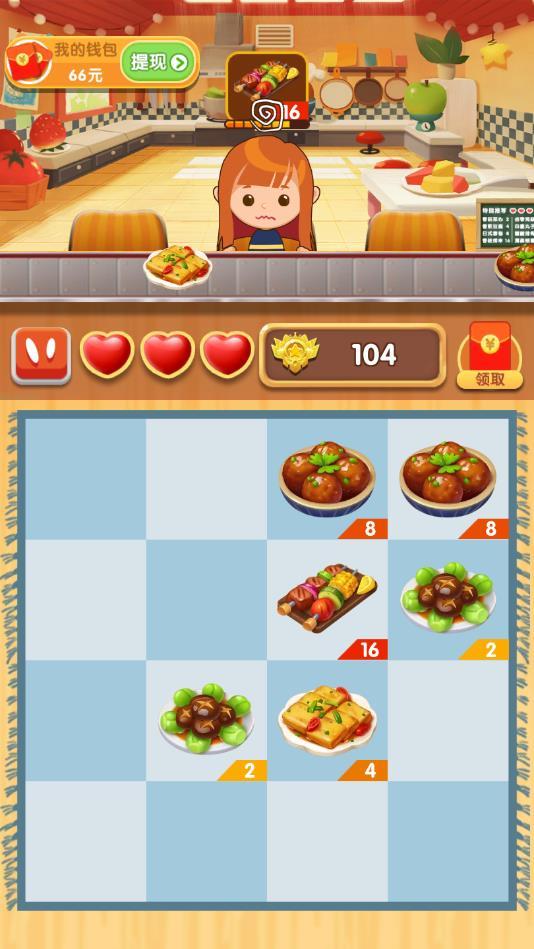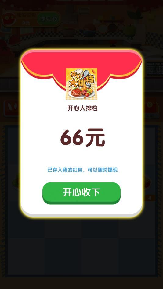 开心大排档让你轻松进行大排档的经营操作,以合成的方式进行更多菜品的解锁,不断满足顾客的需求,进行商品的不断增加,操作是非常简单,轻松就可以上手进行店铺的经营,而且还能够赚取红包奖励,进行零花钱的赚取。