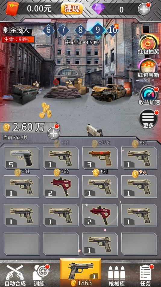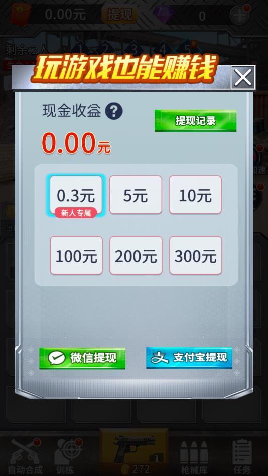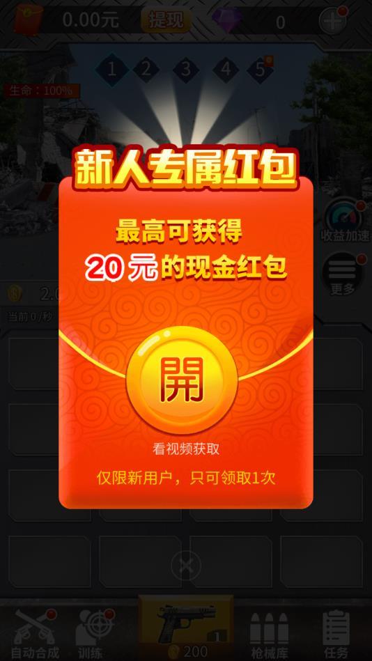 解锁顶级枪支就能赚取红包,红包随时提现。