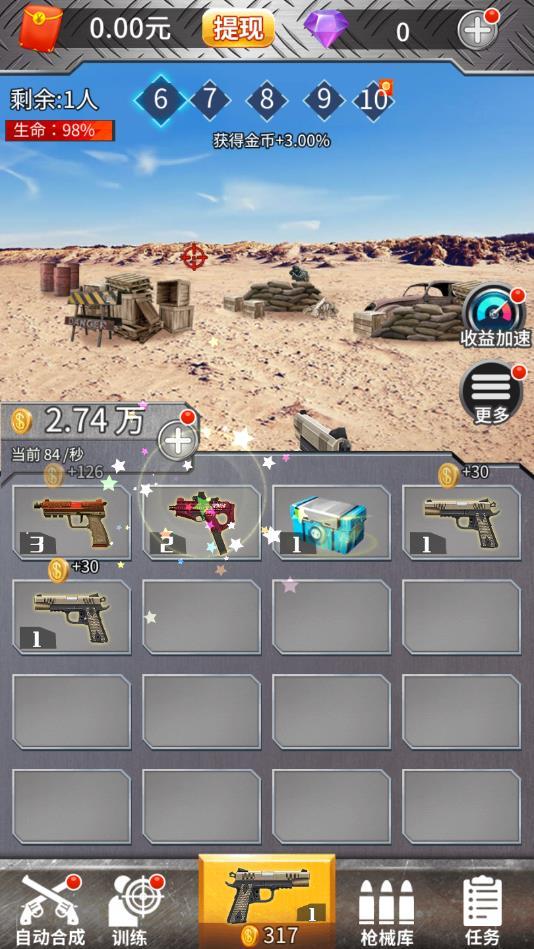 每合成一支枪就可以赚钱,级别越高奖励越高。