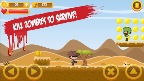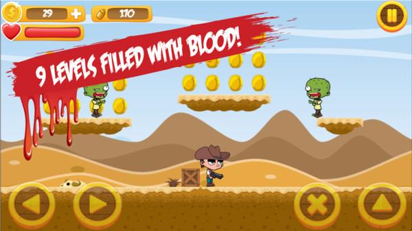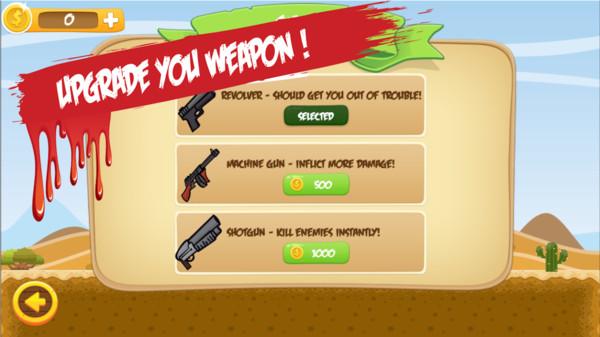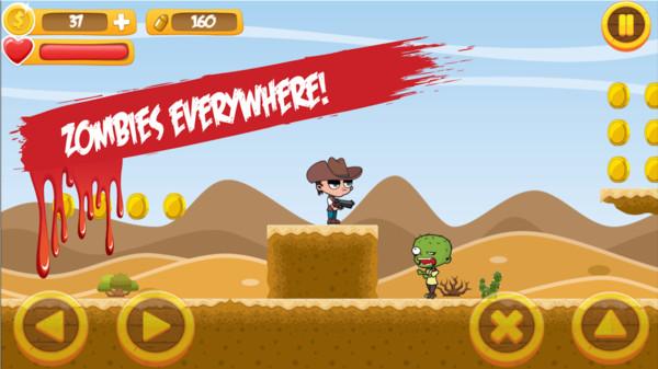 牛仔吊打僵是一款结合了冒险与射击的休闲游戏,玩家在游戏中需要控制角色前进冒险,并使用手中的枪械将出现的僵尸都击杀掉,冒险途中要躲避陷阱和防止被僵尸攻击,直到安全到达终点就能获得胜利,玩家还可以收集金币来解锁各种不同的枪械使用;