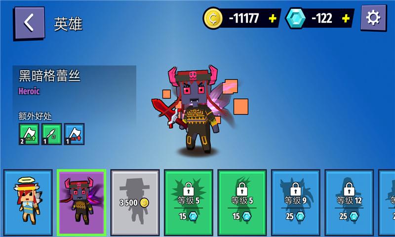 3、丰富的英雄和武器类型,都能用金币解锁,自由选择体验战斗;