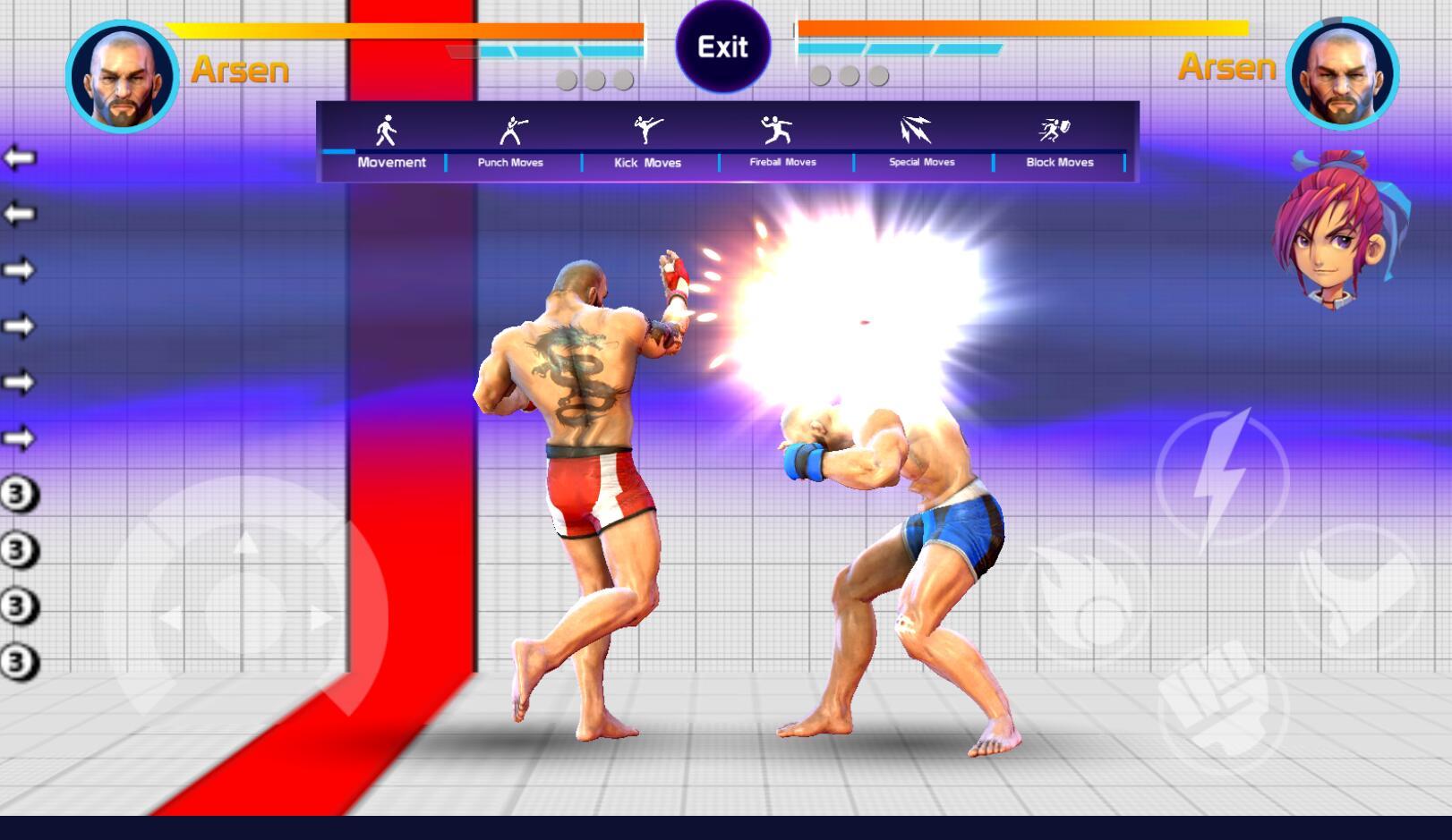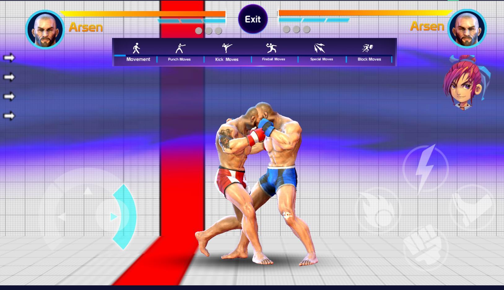 您还可以选择或与不同的战斗员随机作战,每个玩家都有多次踢,拳,连击等技能。