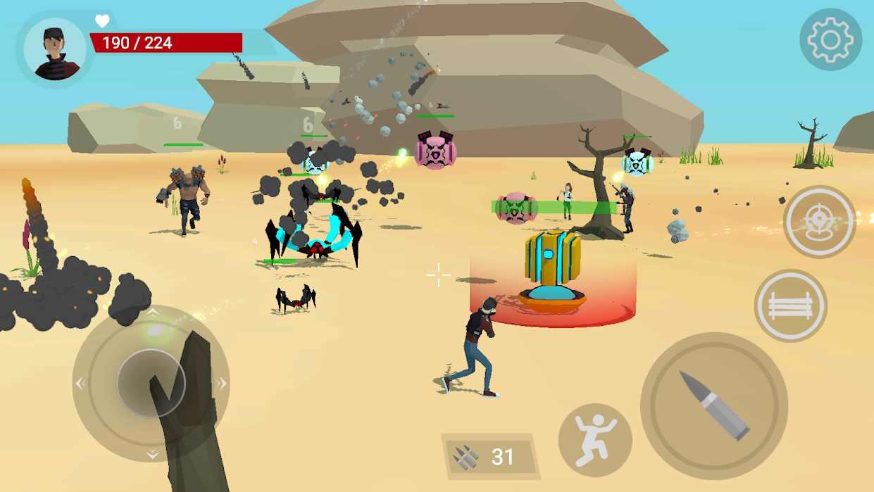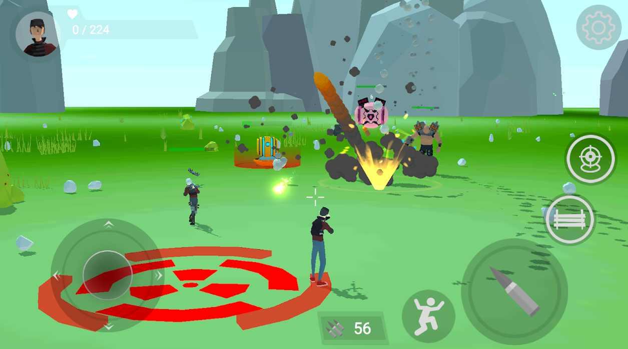 在一个巨大的沙盒之中玩家能够玩得内容是非常丰富的,在这款沙盒枪战模拟器的游戏中你将能够在沙盒中和各路玩家展开一场枪战比赛,你能够通过简单的射击的玩法来攻击你的敌人,游戏的地图很大,你能够在地图上进行探索来寻找枪支弹药等道具,你还需要注意保护你的基地,基地的血量很重要,使用各种各样的武器来进行战斗吧。