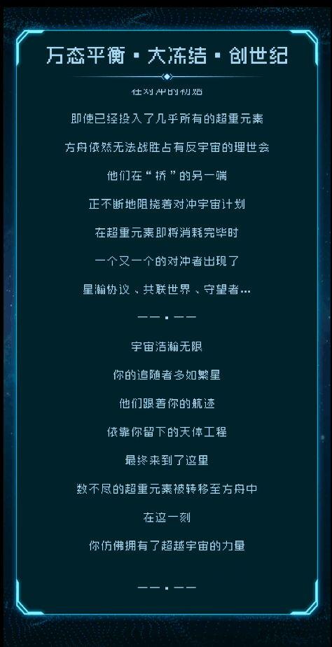 需要进行撤离玩家将作为方舟的驾驶员,而方舟的驾驶需要大量的能量这些能量来源于物质的转化。