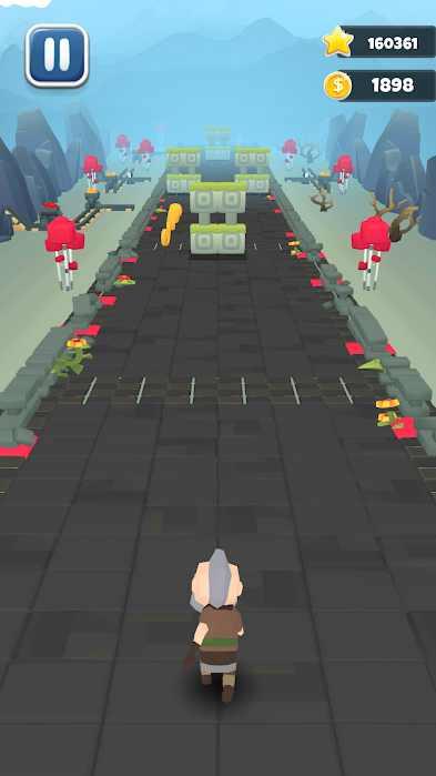 3、游戏非常简单,就是操控各种各样的不同的角色向前奔跑,躲避机关和怪物,收集水果和宝箱。