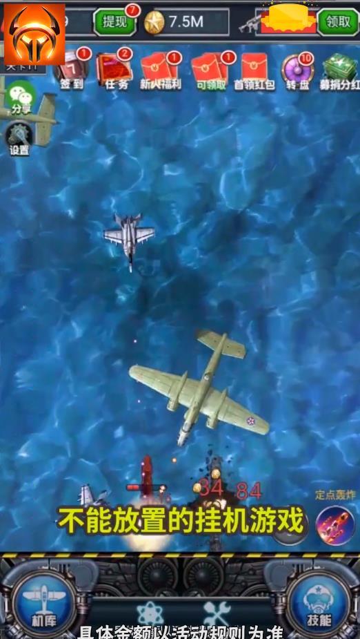 游戏中解锁升级你的战机,战机会发射枪炮、激光、导弹等自动击打目标。