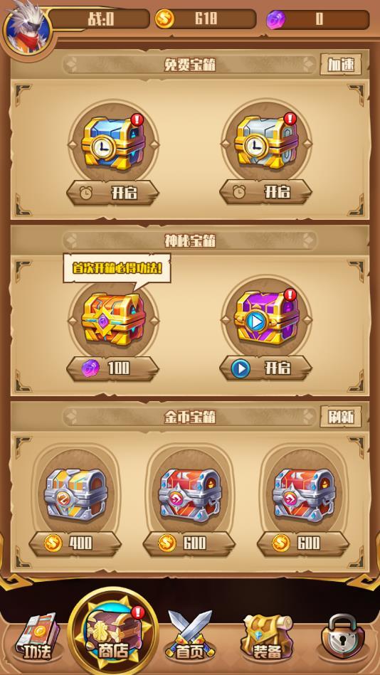 我要神话装游戏中的战斗是非常轻松,你只需要不断进行宝箱的购买,宝箱可以随机爆出装备,装备是可以进行合成的,能够有效的进行多方面数据的提升,让你角色的战斗力不断提升,角色是能够自动战斗的。
