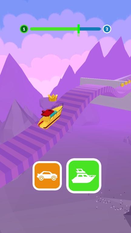 三种模式下进行尝试与体验,在熟悉不同交通工具的切换之后,会逐渐加入与其他玩家的对抗,并逐渐提升关卡内的游戏难度