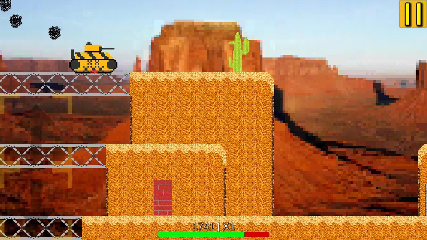 坦克骑士是一款跑酷类型的射击游戏,这款游戏采用像素的画风,画风十分的怀旧复古,玩家需要控制坦克射击前方的敌人,并不断的跳跃躲避障碍,此游戏为大家破解成为大量用不完的货币,玩家可以使用货币来解锁各种不一样的坦克来玩游戏;